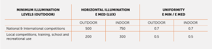 Our padel court lighting meets the highest quality standards both in terms of lux quantity and uniformity in all playing areas (net, accesses, backdrops, sides). Depending on the use of the padel courts, our ranges of LED fixtures cover all the types of courts indicated in the European standard for sports lighting, UNE-EN-12193:2020.